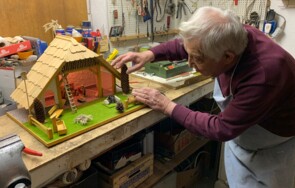 Bernhard Schmidt aus Unterfranken ist Krippenbauer aus Leidenschaft. Keine seiner Krippen gleicht der anderen, alle sind mit viel Liebe zum Detail handgefertigt, jede ist eine lebendige Welt aus Holz – mit Stern, Raufe, einem Brunnen, einer Feuerstelle, einem Holzstapel, einer Bank und einem Vogelhäuschen.