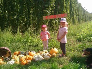 Von Ende August bis Ende Oktober verteilten Hanni (vier Jahre) und Leni (zwei Jahre) Zierkürbisse gegen eine freiwillige Spende. Die Ernte im Tollbacher Hopfengarten erbrachte stolze 200 Euro.