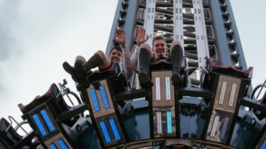 BR-Korrespondent Philip Kuntschner und BR-Moderator Florian Schwegler wollen am Montag, 31. Juli 2023 einen Weltrekord aufstellen: mindestens 116 Fahrten im Freefall-Turm des Bayern-Parks.