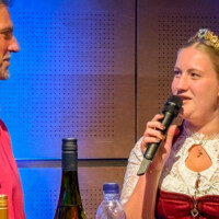 Vom Ehrengast, der Weinprinzessin Susanna Lenzer, erfuhr das Publikum in einem kurzweiligen Gespräch vieles über den Frankenwein. Die Weinprinzessin aus Iphofen informierte insbesondere über Lagen und Rebsorten und klärte über Weinproben und die richtige Wahl der Gläser auf. Nicht zuletzt schilderte sie ihren persönlichen Bezug zum Wein und ihren Werdegang.
