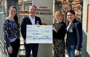 Diese Woche übergaben die Vertreterinnen der Mädchenrealschule Rosenheim einen Scheck von 9.400 Euro an den Geschäftsführer von Sternstunden Florian Babel.